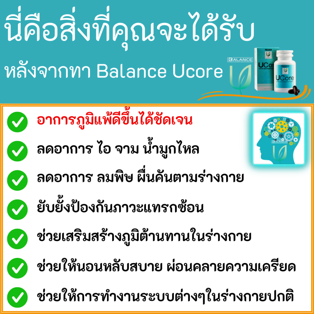 หลังจากที่กิน UCore จนหมดชุดโปรที่สั่งมา น่าทึ่งมากค่ะ จากวันนั้นถึงวันนี้ เป็นเวลา 9 เดือนกว่าแล้ว อาการภูมิแพ้เรื้อรัง ที่เจนเป็นอยู่ ก็ไม่กลับมารบกวนใจเจนอีกเลยค่ะ ทุกวันนี้สุขภาพเจนดีขึ้นมากค่ะ เหมือนได้ชีวิตใหม่อีกครั้งเลยจ้า
