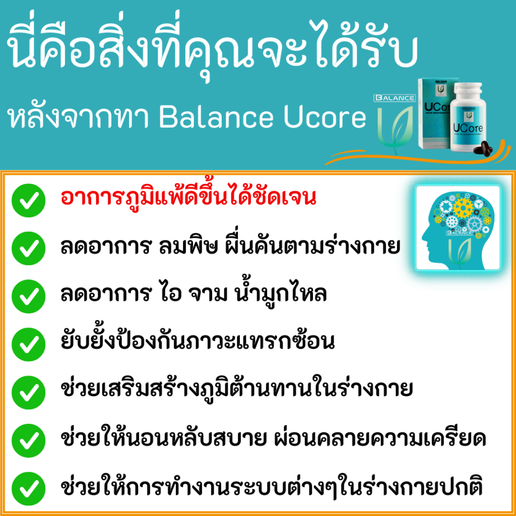 ยอมรับว่าช่วงแรกเจนก็ไม่ค่อยเชื่อค่ะ ว่า UCore จะดีขนาดนั้น แต่ก็ไม่อยากกินยาแก้แพ้ไปตลอดชีวิต มีหวังไตวายตับพังแน่ๆเลย เจนจึงหาข้อมูลเพิ่มเติมทางเน็ต พบว่า UCore เป็นสารสกัดจากสมุนไพร 13 ชนิด แถมมี อย.และเครื่องหมาย ฮาลาลด้วย และมีรีวิวจากผู้ที่กินแล้วเห็นผลจริงจำนวนมาก